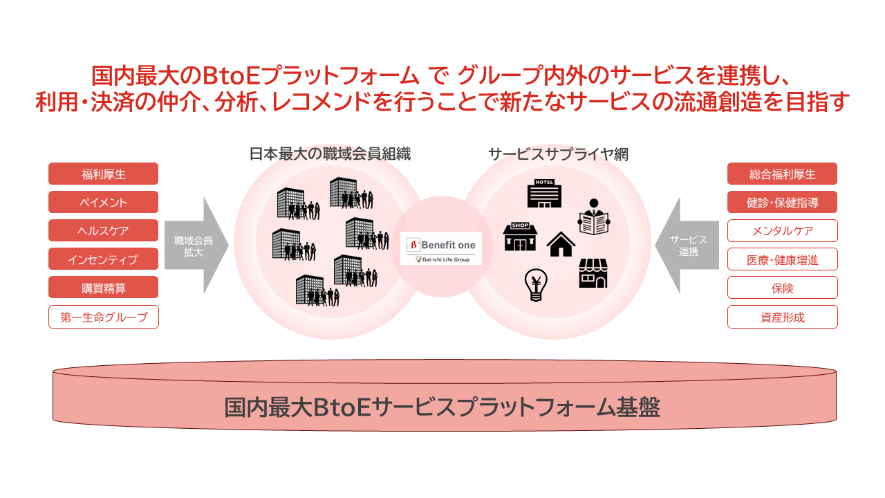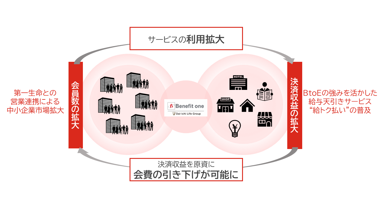 また、当社では、福利厚生やヘルスケアなど人事労務関連における多様なアウトソーシングサービスと当社サービスとの連携を進めることで顧客企業の人事部門における利便性が一層向上すると考えており、「ベネワン・プラットフォーム」の機能拡充やグループ内外の連携先開拓を中長期で進め、顧客企業の人と組織のパフォーマンス向上にも貢献してまいる考えです。