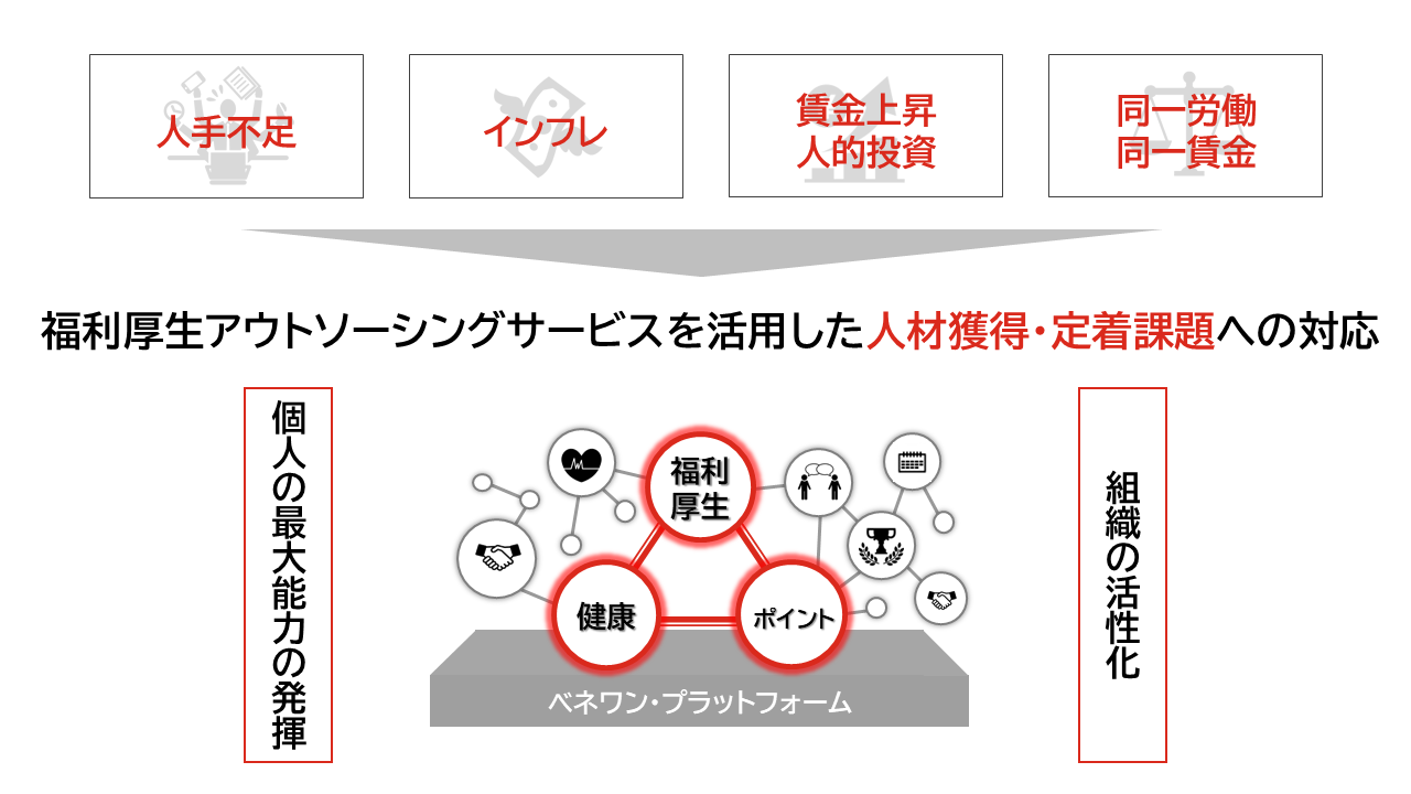 昨今の企業経営において、人材獲得・定着課題への対処は優先度が高く、今後ますます福利厚生アウトソーシングサービスの活用機会が広がっていくとみております。
