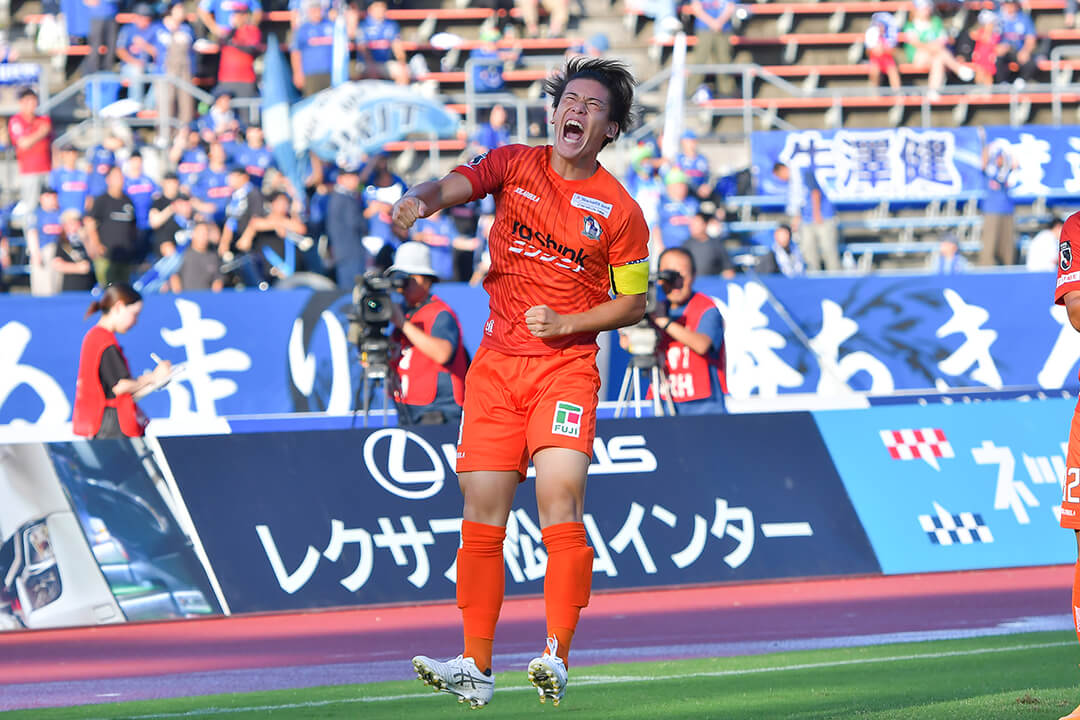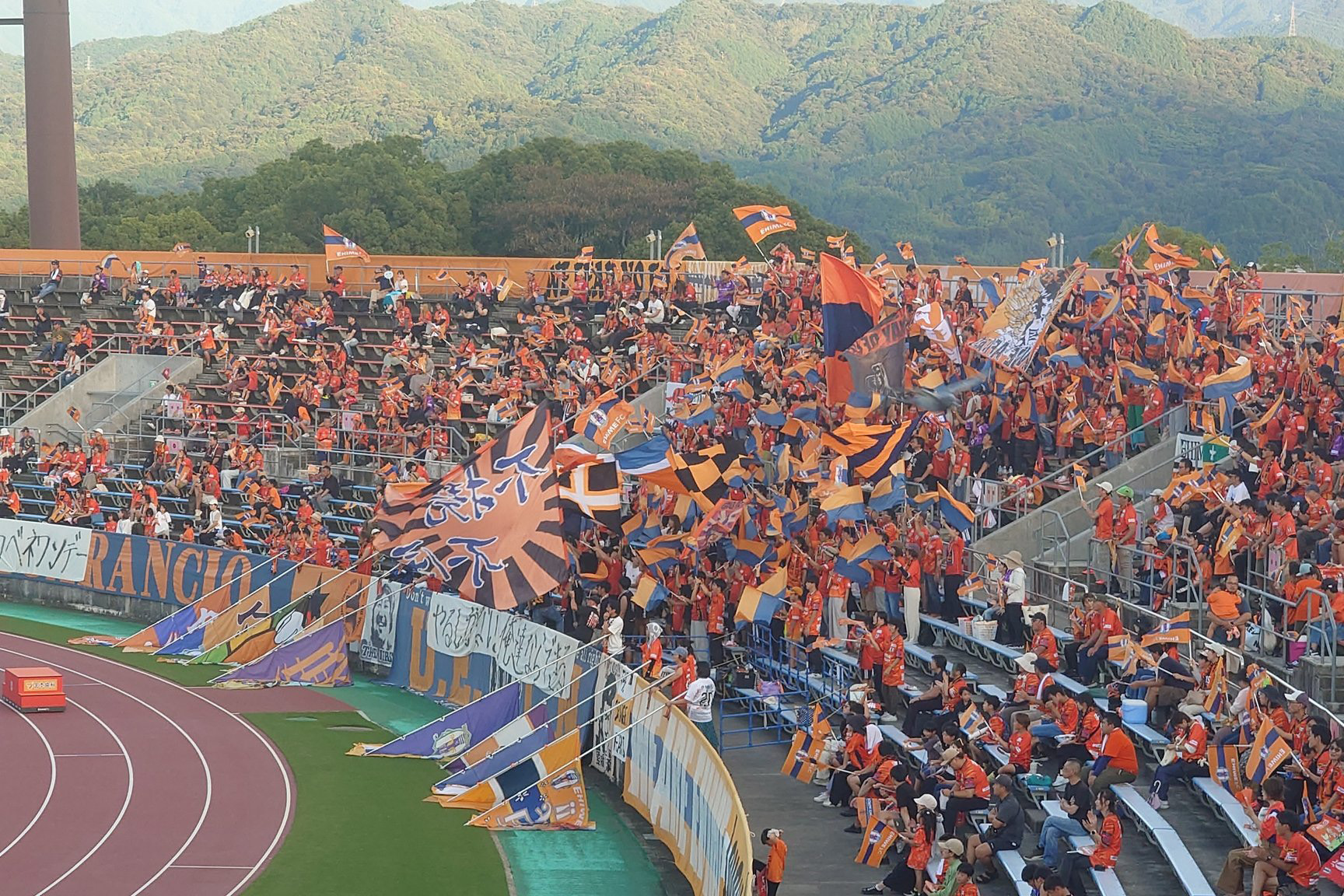 対戦相手は、現在J2リーグ首位の水戸ホーリーホック。序盤は愛媛FCペースで試合が進み、深澤選手がチームを活気づける先制ゴール!観客の熱気でスタジアムが沸き立ちました。
