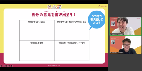「理想の学校」をテーマに、全国のこどもたちがオンラインで意見交換を実施。