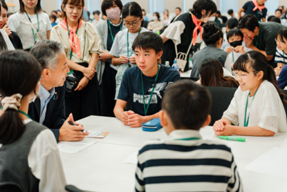文部科学省の方々が、こどもたちとコミュニケーションを取りながら意見に耳を傾けてくださいました。