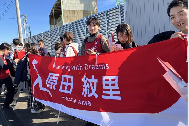 当日はベネフィット・ワンから総勢24名の応援団が仙台に集結し、横断幕を掲げ、選手たちの背中を押す声援を送り続けました。ベネフィット・ワン応援団の前を駆け抜ける原田さんの姿は、力強く、どこか楽しそうで、競技に向き合う真っすぐな姿勢が伝わってきました。